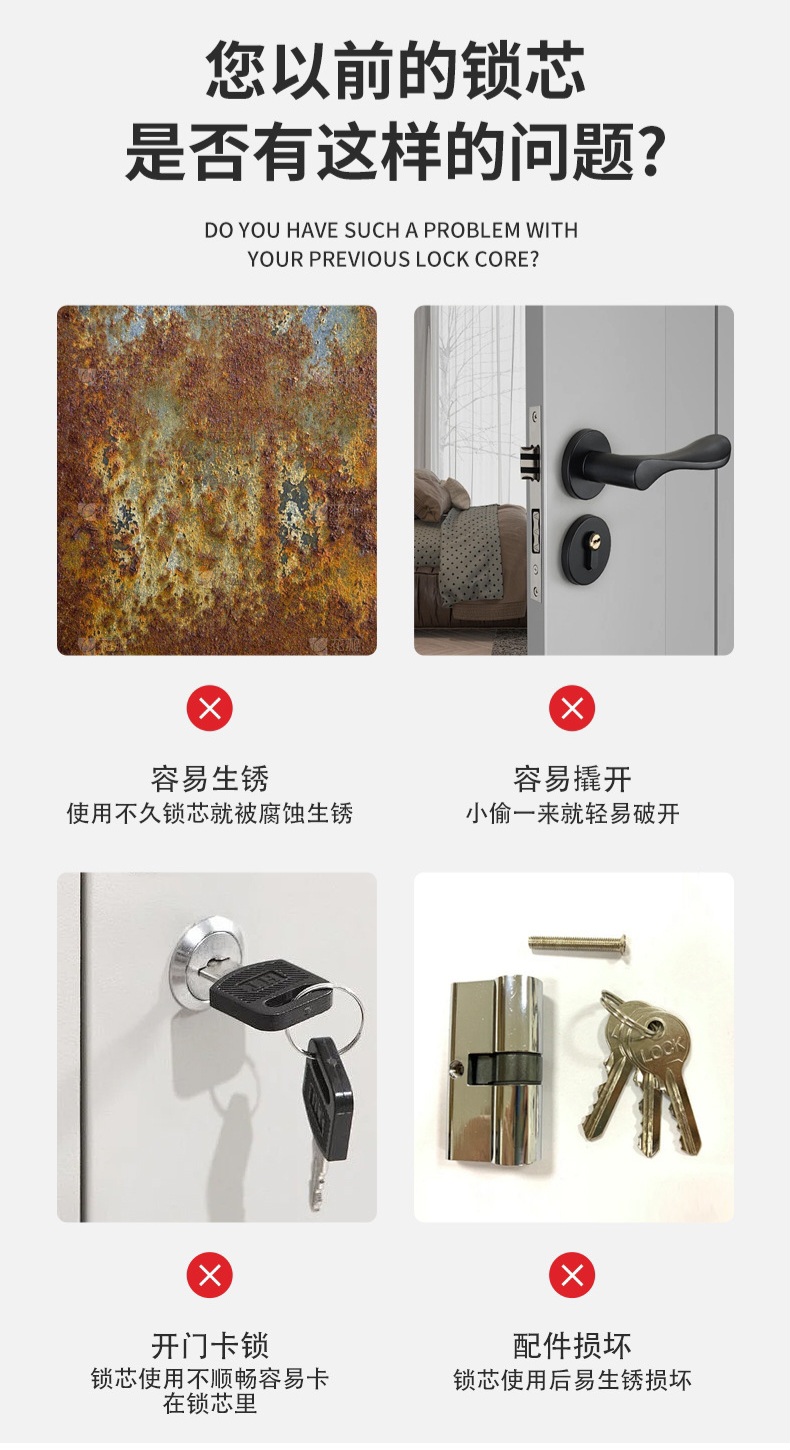 Description: The PH-15560 lock cylinder is made from high-quality brass and zinc alloy, ensuring excellent durability, corrosion resistance, and long service life. Precision manufacturing guarantees smooth operation and reliable locking performance. This product is suitable for security doors, wooden doors, and room doors, making it an ideal choice for residential and commercial applications.